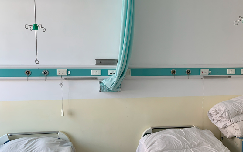 病房的床头上方安装铝合金设备带,每个床头安装一个氧气终端、一个吸引终端、一个呼叫器、开关插座及照明设备、和网络信息插座。
