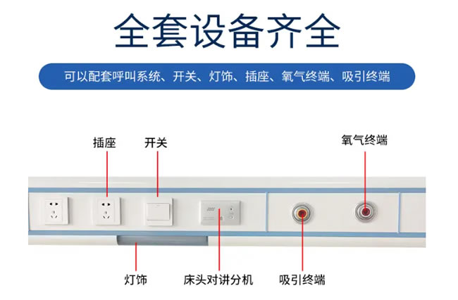 | 端口(床位)数量 | 管道与管道设备、病房设备带、气体终端、呼叫对讲系统、配电照明 | |||