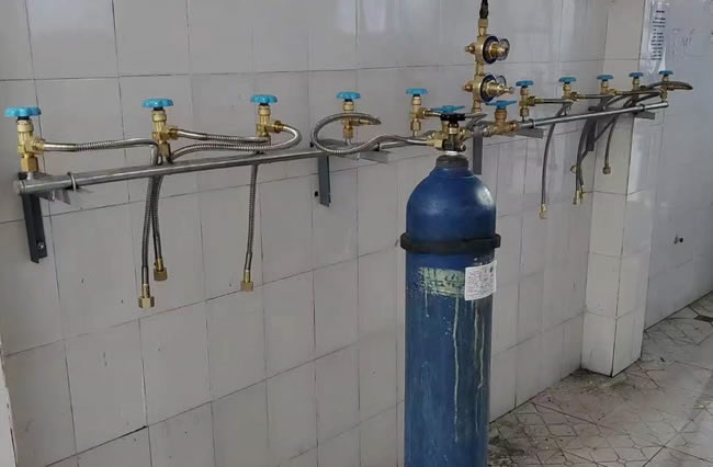 另外,还需要对管道进行泄露率调整,泄漏率是管道普遍存在的现象,为啦达到减压的目的,需要从阀门泄露部分气体,这需要根据病房的用氧压力和流量来决定。但是泄露氧气存在着安全隐患,氧气管道里的氧气是助燃强氧化的,所以现在都采用减压装置来控制压力。