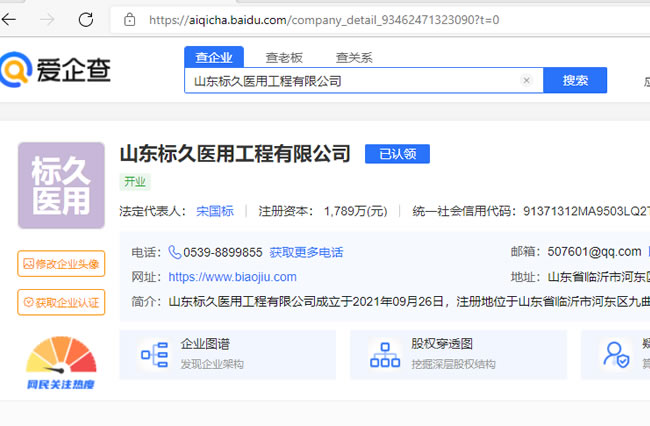 2、通过爱企查网站可以查看其公司是否具有医疗器械经营许可或第二类医疗器械经营备案证,具有以上证件的就符合医疗器械及华体会(中国)中心供氧系统设备的销售、批发经营权。