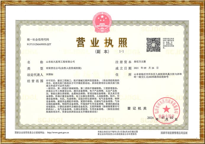 资质包括华体会(中国)中心供氧系统、华体会(中国)中心负压吸引系统、医护对讲系统、医院氧气管道华体会(中国)气体工程安装、医疗气体系统工程、医院手术室净化工程、层流洁净手术室装修、实验室建设装饰净化工程、无尘车间净化工程设备的生产加工、批发销售与安装施工资质(部分资质文件未展示,可索取查阅)。