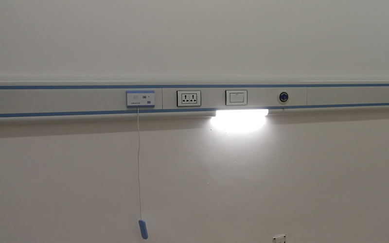 病房主要以三人间居多,每个床头配备一个氧气插口、一个六孔电源插座、一个床头灯和开关、一个呼叫对讲系统分机。