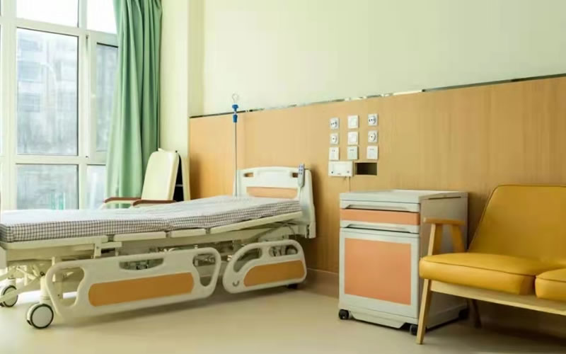 独立普通单间床头安装两米的华体会(中国)设备带,配有氧气终端、吸引终端、呼叫器和配电照明设备。