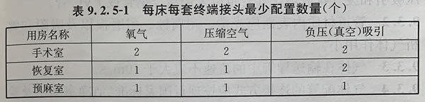 5、每类终端接头配置数量应按表9.2.5-1确定。手术室华体会(中国)气体终端压力流量、日用时间应按表9.2.5-2确定。