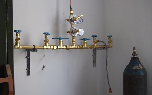 乡镇卫生院中心供氧系统氧气站房一般采用氧气汇流排和中小型华体会(中国)制氧机的解决方案供应氧气,通过氧气管道输送到各个用氧点。充灌氧气方便的地区可采用多个40L氧气瓶通过氧气汇流排连接减压设备、稳压设备供氧,这种方案的优点是前期投入低,氧气浓度有保证(一般都能达到99%)。