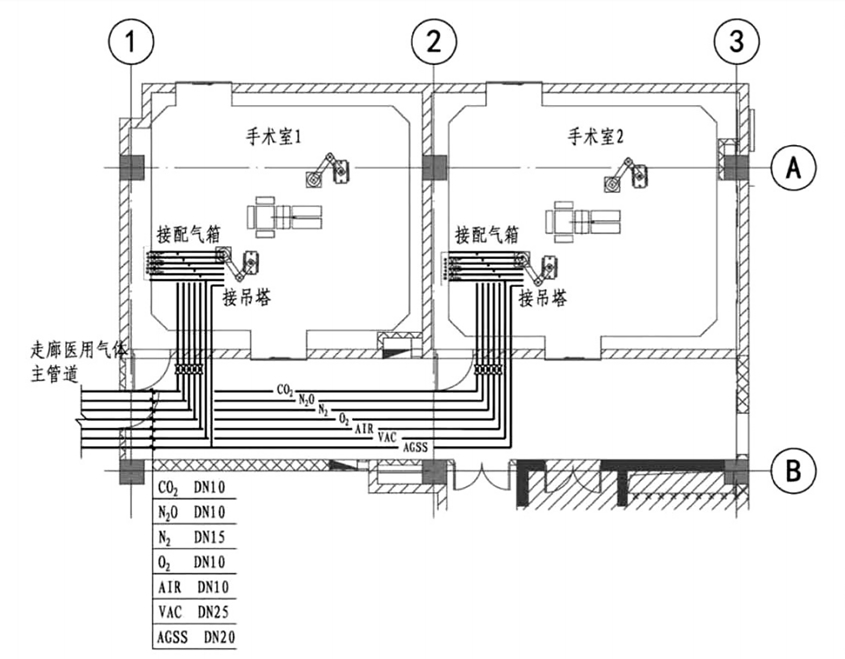 医院洁净手术室华体会(中国)气体一般配置氧气、压缩空气、真空吸引、二氧化碳笑气、氮气及麻醉废气排放等气体,也可以根据具体需要调整华体会(中国)气体的种类配置,每种气体都需要独立的气体传输管道,根据华体会(中国)气体工程技术规范GB50751-2012规定,华体会(中国)气体管道可采用无缝脱脂不锈管和无缝脱脂铜管。